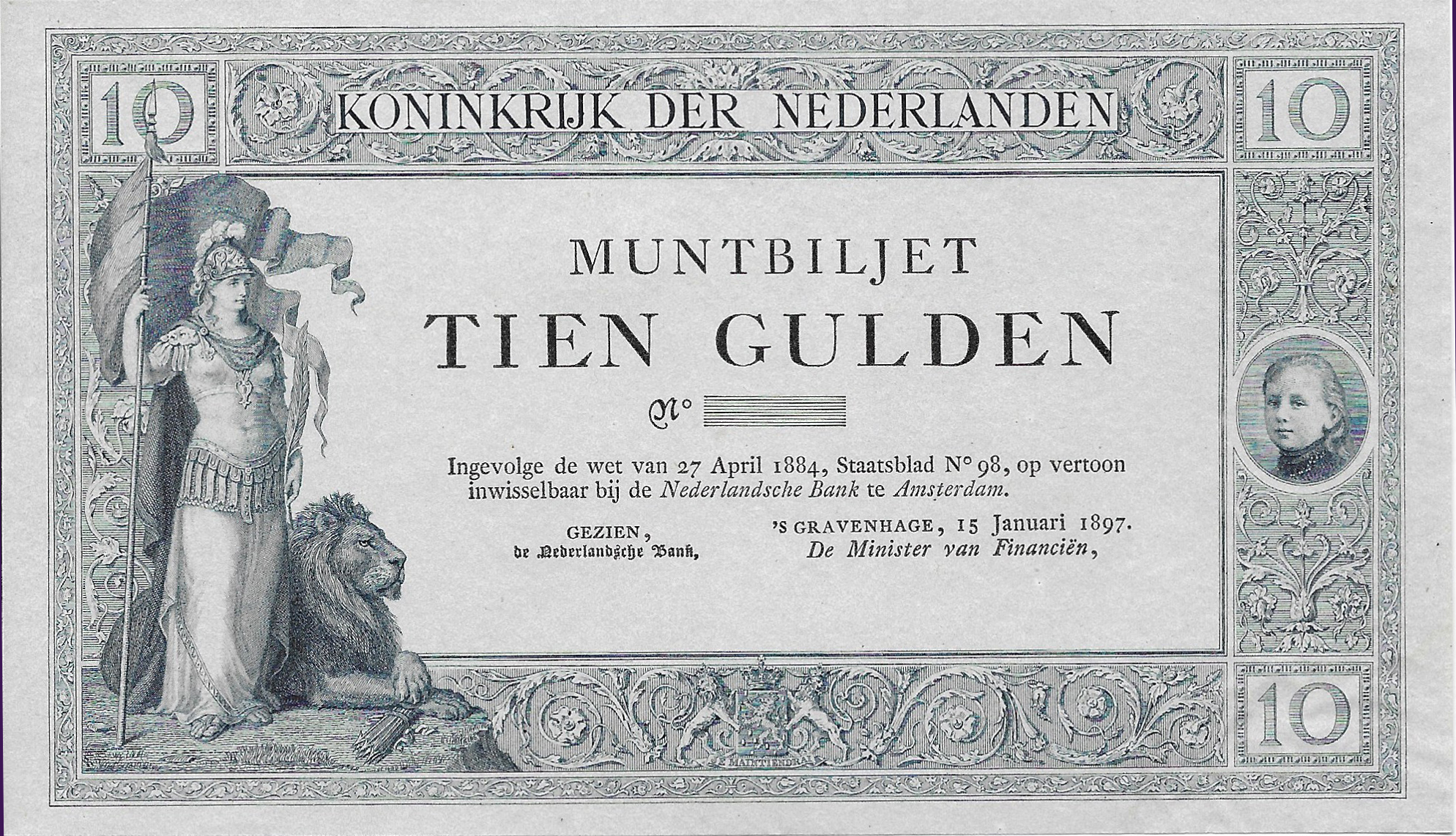 Alles over de 10 gulden 1894 van het type Munt-biljet uit 1894. 10 gulden 1894: foto's en informatie over dit Nederlandse bankbiljet.
