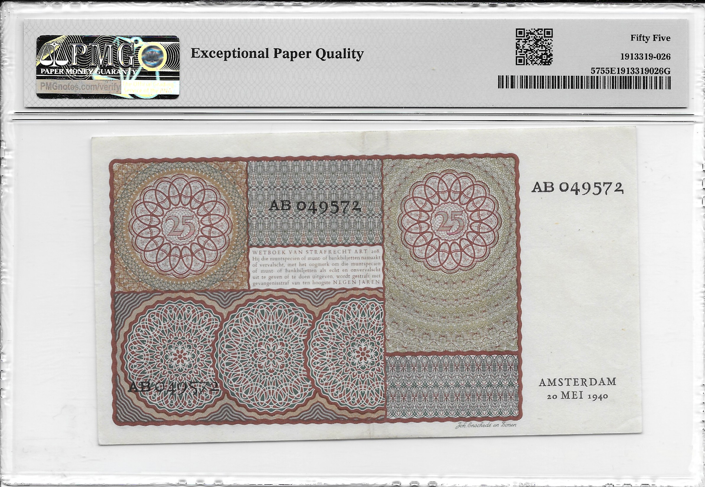 PMG populatie rapport van het biljet 25 gulden 1940 Prinsesje, pick# 57