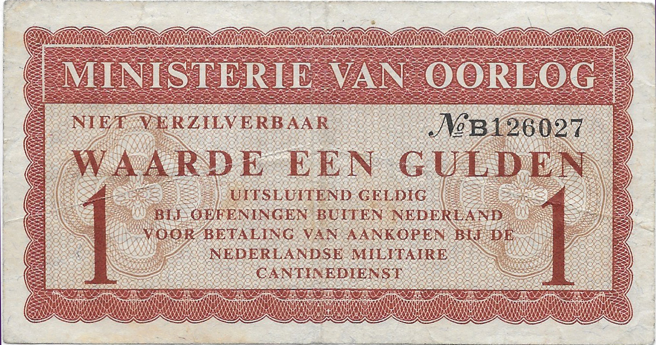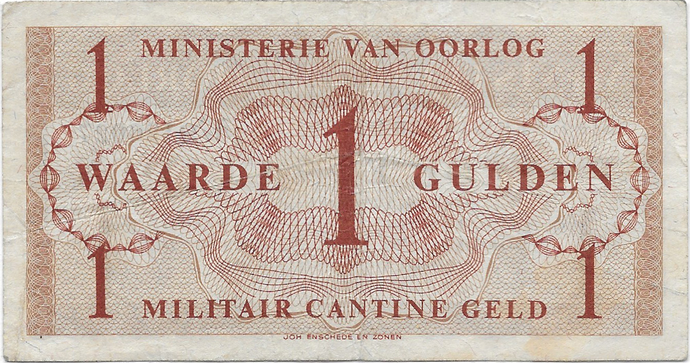 Alles over de 1 gulden 1954 van het type Kantinegeld uit 1954. 1 gulden 1954: foto's en informatie over dit Nederlandse bankbiljet.