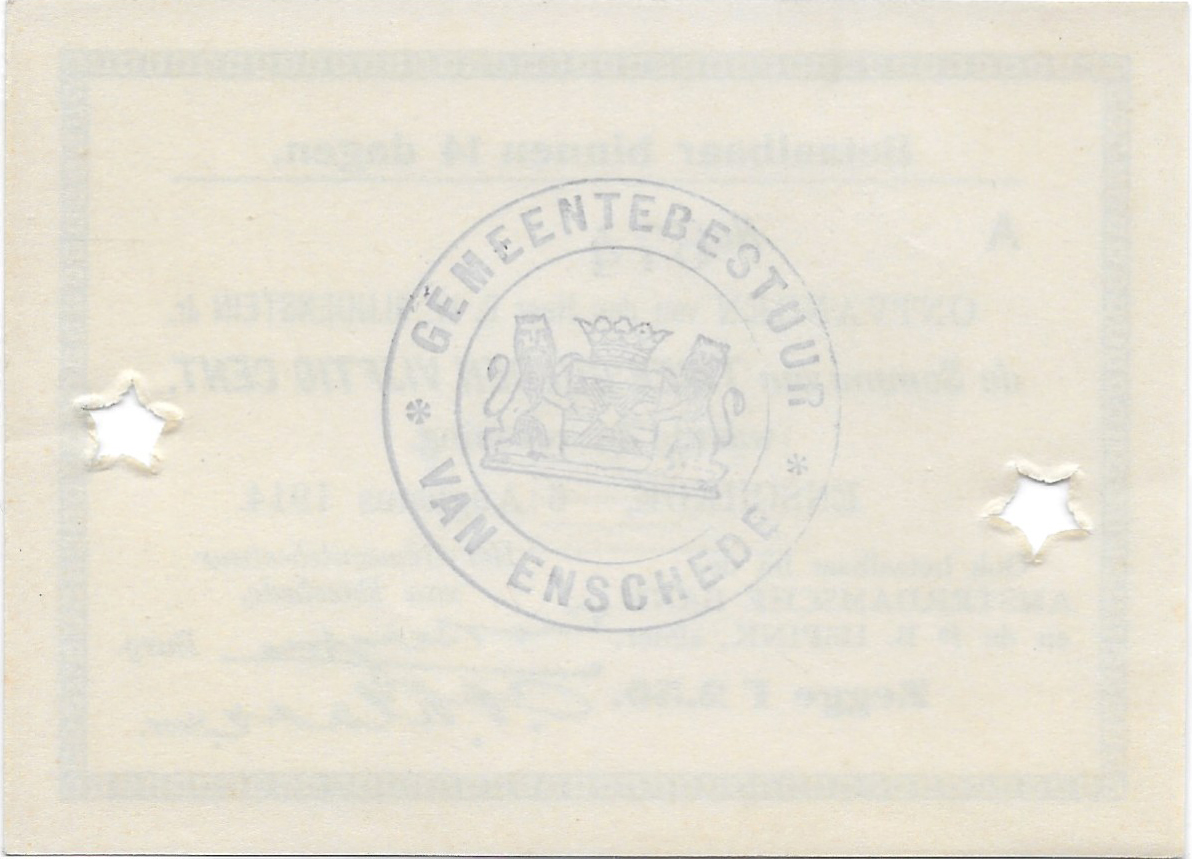Alles over de 2,5 gulden 1914 van het type Noodgeld Enschede uit 1914. 2,5 gulden 1914: foto's en informatie over dit Nederlandse bankbiljet.