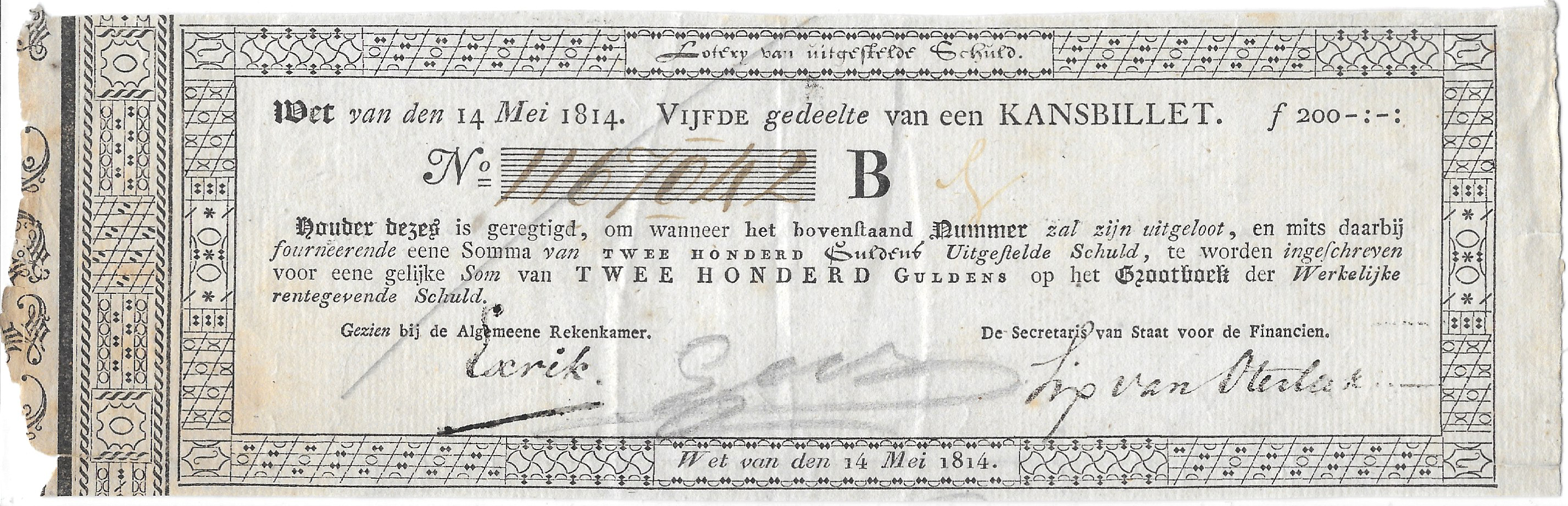 200 gulden 1814 Kansbillet (S/N 1167042)